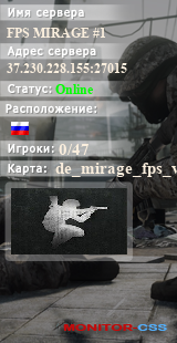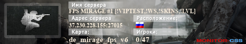| Баннеры для сервера: FPS MIRAGE #1 [!VIPTEST,!WS,!SKINS,!LVL] | ||