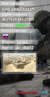 | Баннеры для сервера: [v34] ADRENALIN [DeathMatch] [LR] 16+ | ||